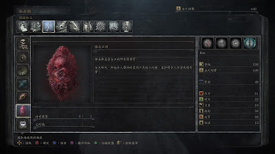 在《血源诅咒》(Bloodborne) 里,道具物品的描述也成为了游戏线索的展示空间。